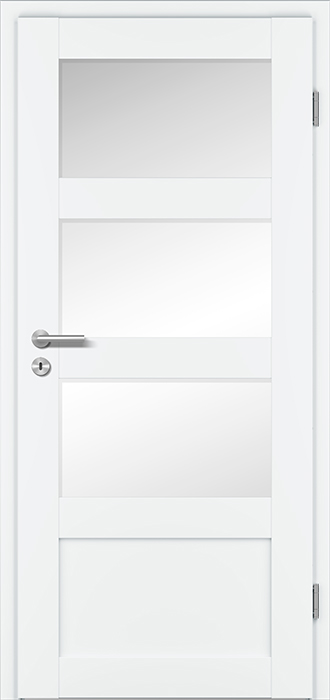 Die STIL-Türen umfassen 15 Modelle unter denen auch diverse Lichtausschnittstüren zur Auswahl stehen. Diese gibt es standardmäßig mit einer Verglasung von ESG 8 mm in Float klar. Sie haben aber auch die Möglichkeit, andere Verglasungen zu wählen, um die Türen optimal an das Einrichtungskonzept anzupassen. Die Weisslack-Türen der STIL-Serie zeichnen sich durch ihr schnörkelloses Design aus,